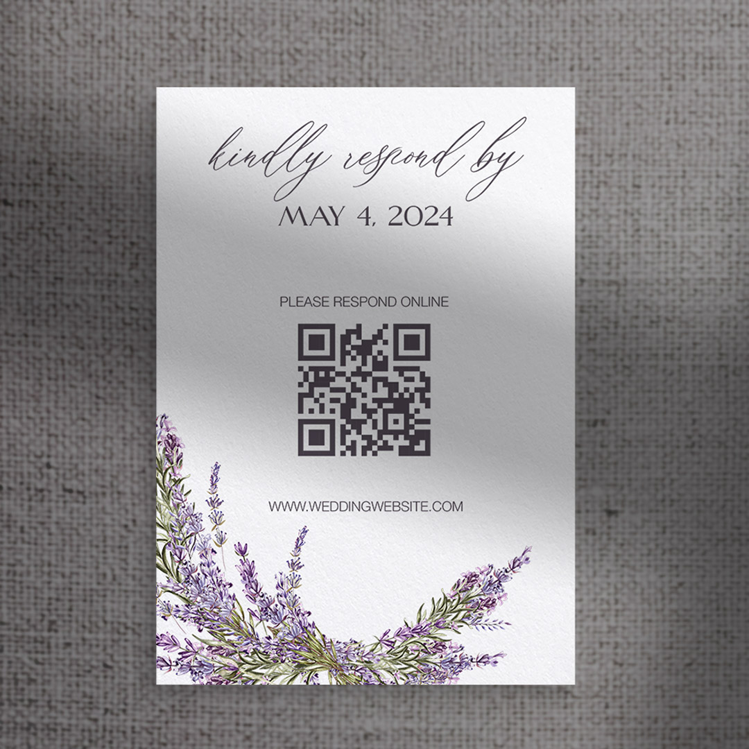 This invitation suite includes your invitation card, one enclosure card, an RSVP card for a digital response (ex. wedding website) and white Euroflap envelopes.