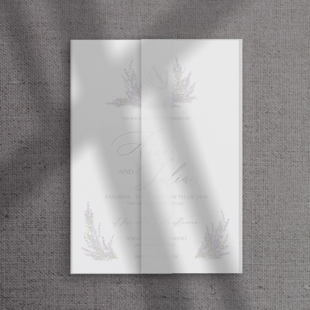 Introducing our enchanting Aria wedding invitations – more than just an invitation, it’s a poetic ode to your romance, whispered through whimsical ditsy lavender florals. Are you ready to infuse your wedding with a touch of ethereal charm? Let’s dive in!